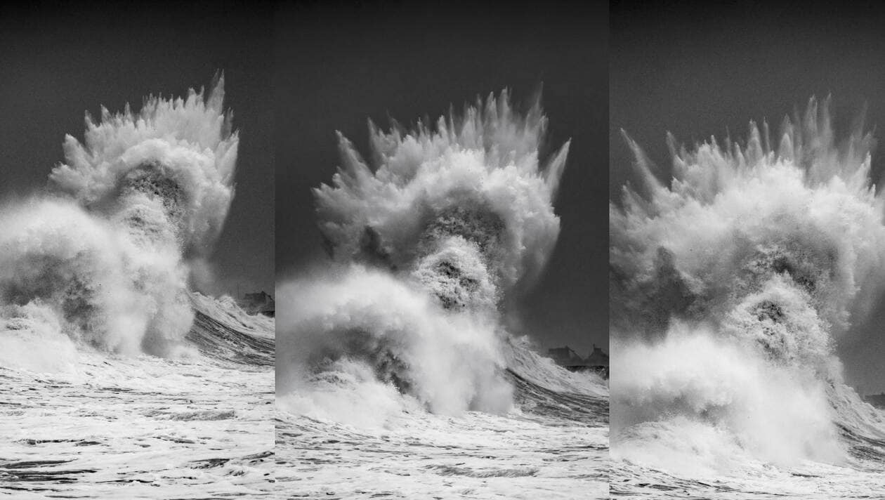 Le souffle incisif et puissant d’Eole provoquait des vagues incroyablement puissantes, esthétiques, qui défiaient les lois de la gravité. Face au déchaînement de l’eau et du vent, Mathieu Rivrin s'est saisi de son appareil pour photographier l'océan dans toute la virulence de ses vagues, réalisant une série de photos en rafale sans vraiment voir ce qu’il prenait sur le moment.