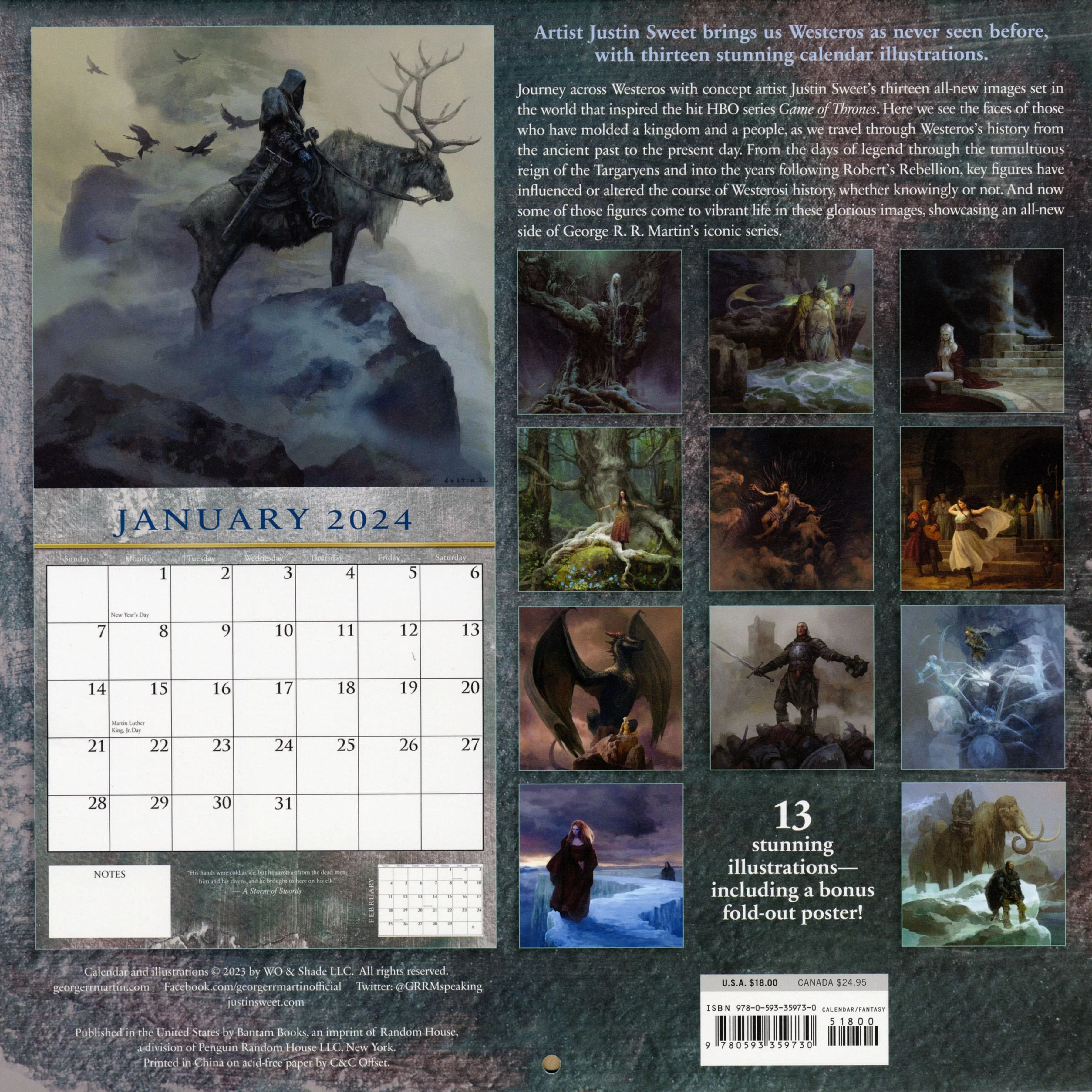 Découvrez Westeros comme vous ne l'avez jamais vu grâce aux oeuvres époustouflantes de l’édition 2024 du calendrier A Song of Ice and Fire illustré par Justin Sweet.