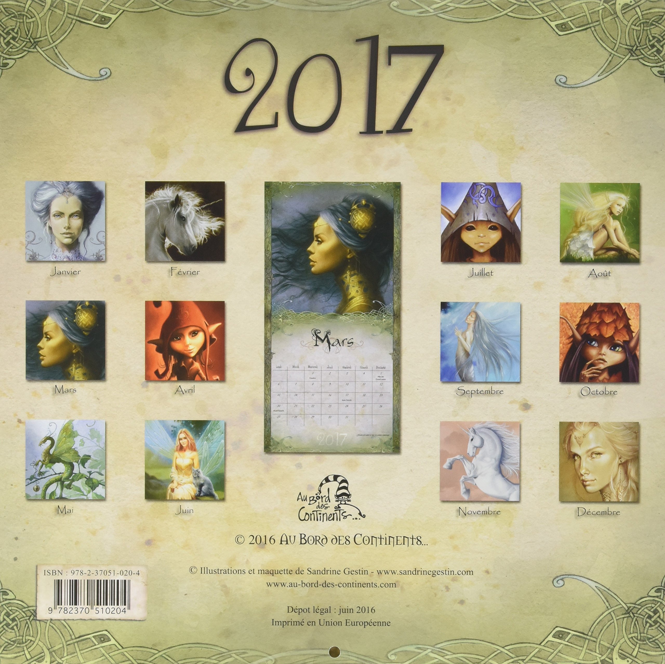 La magie des fées de Sandrine Gestin s'offre à vous tout au long de l'année avec ce calendrier 2017. Il contient 12 magnifiques illustrations féeriques de Sandrine Gestin. Retrouvez toute la douceur des dessins de Sandrine Gestin dans ce très beau calendrier 2017, qui vous invite, mois après mois, à plonger dans la magie des fées, elfes, lutins et autres créatures féeriques.
