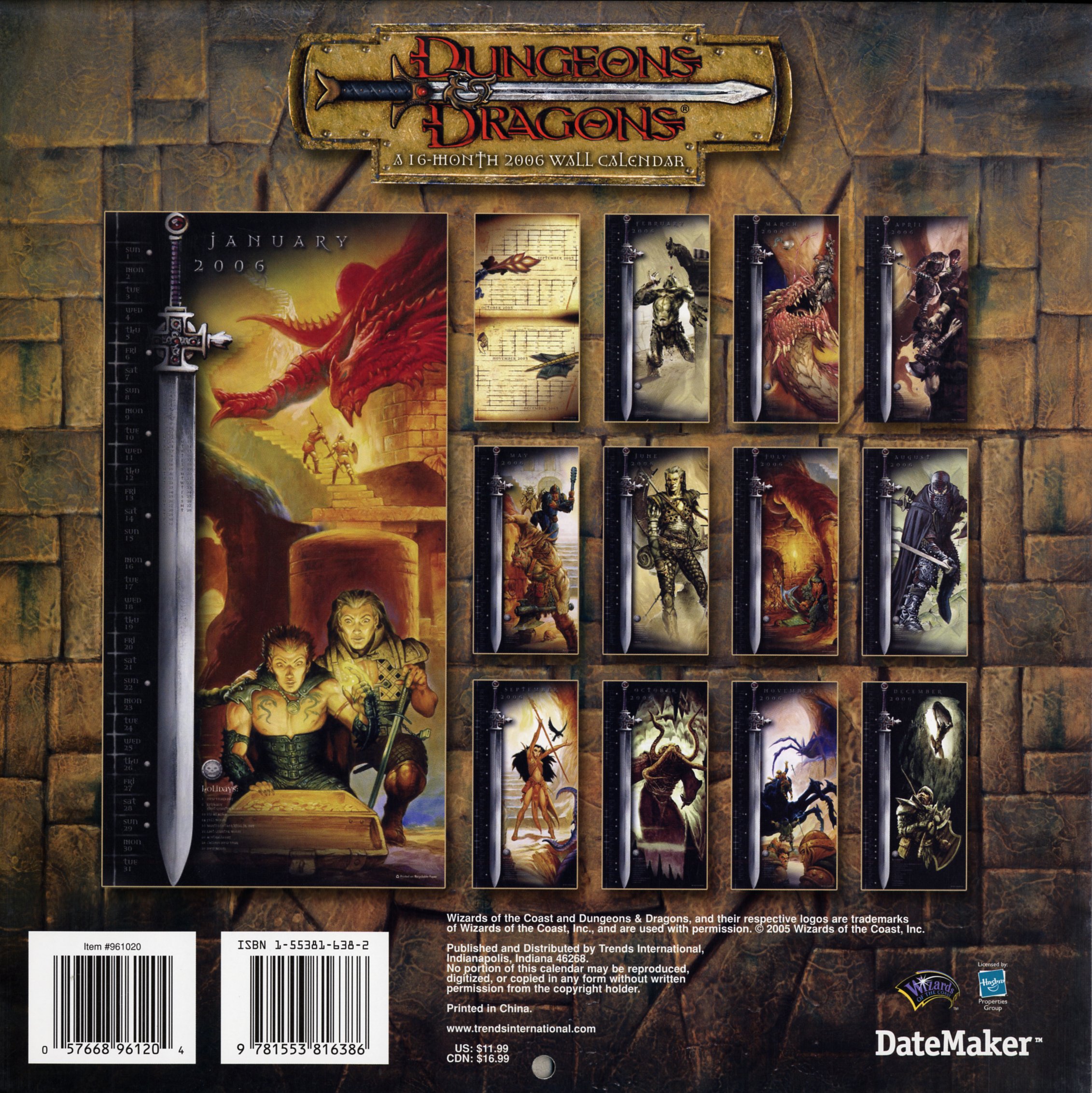 Edition 2006 de la collection des calendriers TSR. Retrouvez une nouvelle fois l’univers Dungeons & Dragons avec les 12 illustrations toutes en double-page, de ce calendrier 2006.