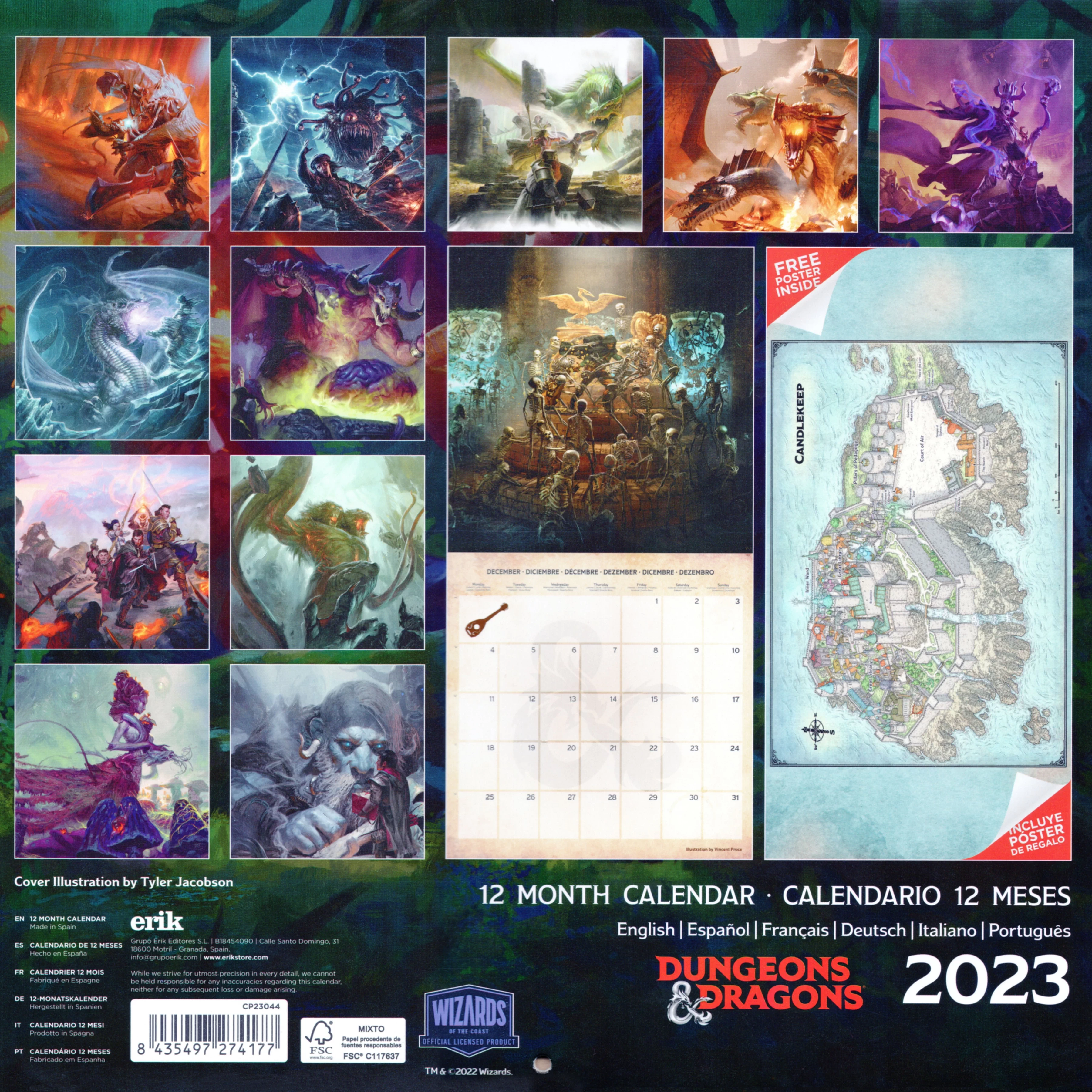 Attendez-vous à une année palpitante avec cette nouvelle édition 2023 du calendrier Dungeons & Dragons publié chez Grupo Erik Editores. Les fans du plus grand jeu de rôle au monde pourront explorer des mondes qu'ils reconnaîtront et les joueurs, dont la curiosité a été piquée lors de leurs parties, imagineront de nouvelles aventures géniales grâce aux superbes illustrations proposées par quelques-uns des plus talentueux artistes de l’univers Wizards of the Coast.