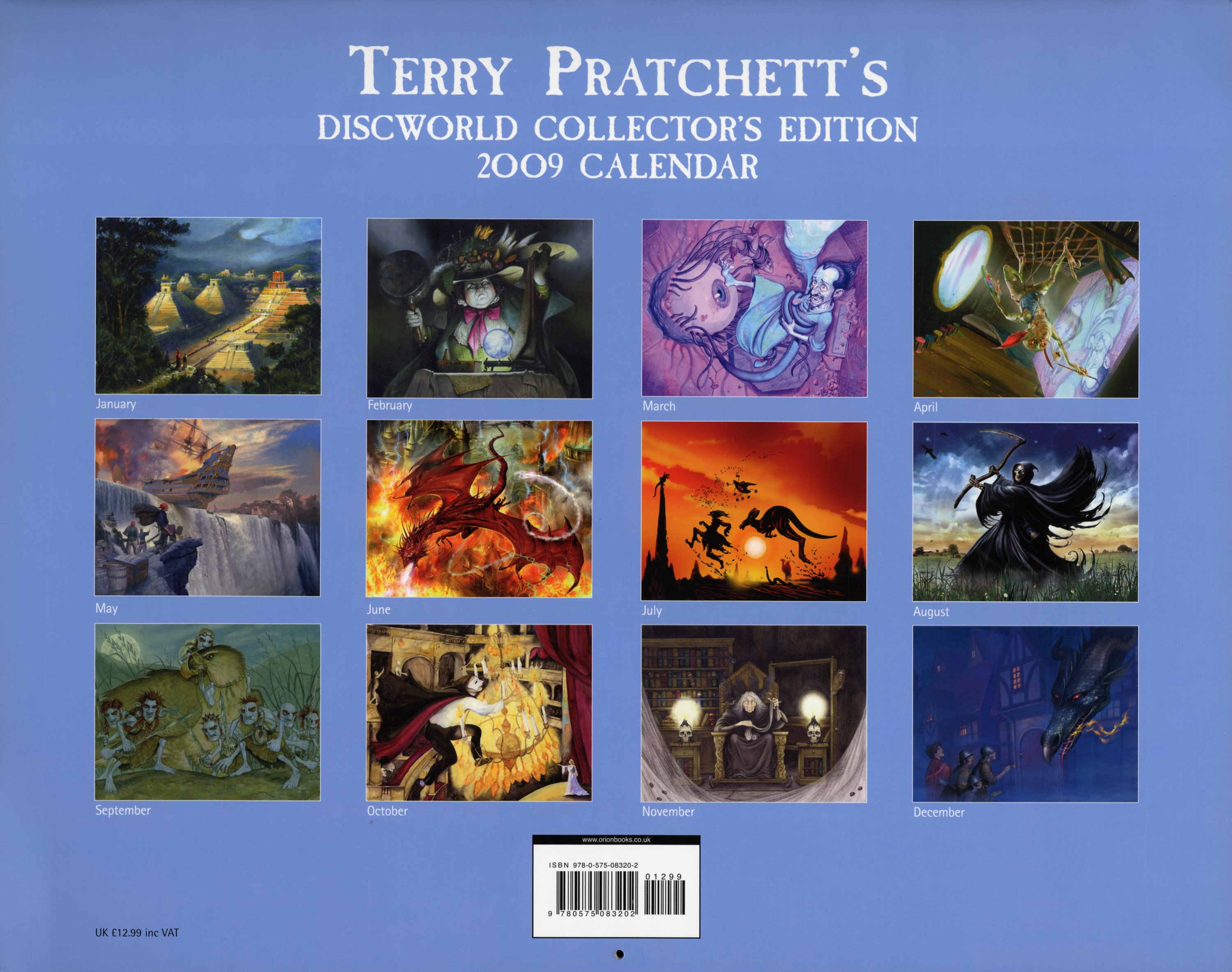 Edition 2009 de la collection des calendriers Discworld. Illustré par un collectif d’artistes, ce nouveau calendrier présente des scènes tirées des romans de la série Discworld. On retrouve les artistes favoris de pratchett, Paul Kidby et Stephen Player, accompagnés de Les Edwards, David Frankland, Melvyn Grant, Dominic Harman, Edward Miller, Jackie Morris, Sandy Nightingale, Jon Sullivan et Angelo Rinaldi, d'autres superstars de l'art fantastique.