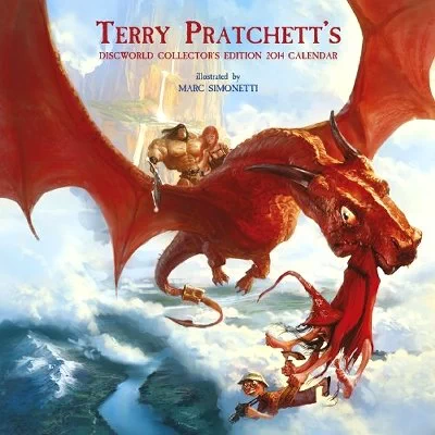Le calendrier Discworld 2014 est la continuité de celui de 2013. Il est en effet illustré par Marc Simonetti, qui nous offre avec cette nouvelle édition la suite des couvertures des éditions de poche françaises de la série Les Annales du Disque-Monde, qu’il a réalisées pour Pocket.