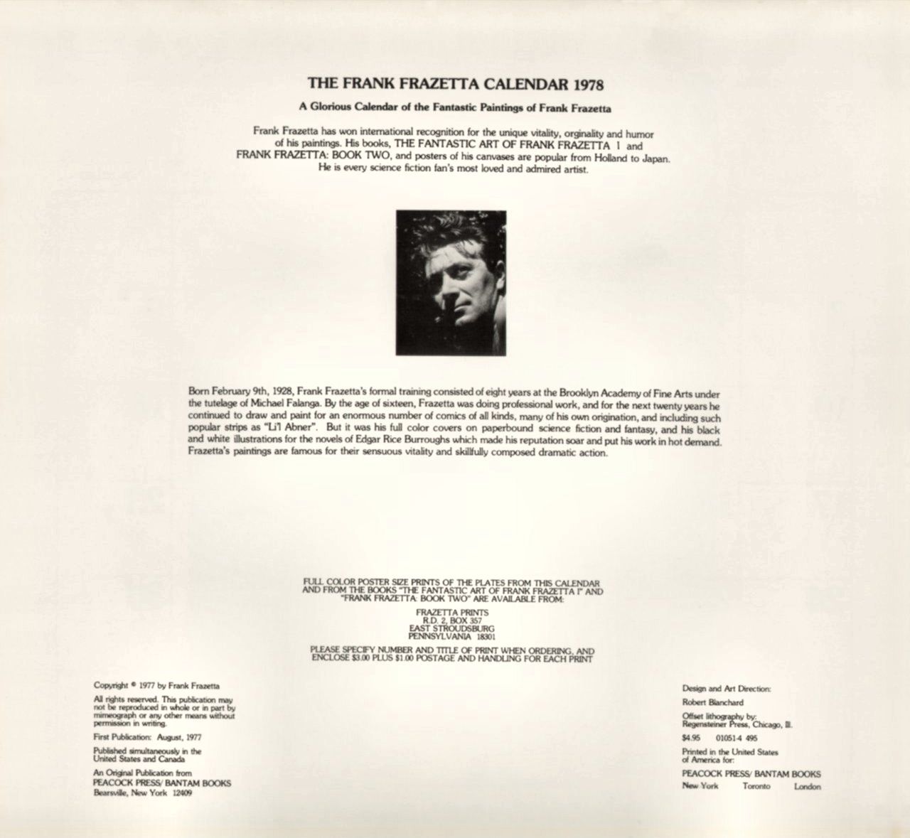 Au milieu des années 1970, la renommée de Frazetta a tellement augmenté que Bantam Books a publié The Fantastic Art of Frank Frazetta, un livre de 96 pages qui présentait le travail de l'artiste. Dans la continuité du livre et pour l’accompagner, un calendrier est sorti en 1977. Cette nouvelle édition 1978, à la présentation et au design identiques, continue ce qui deviendra la collection des calendriers Frazetta.