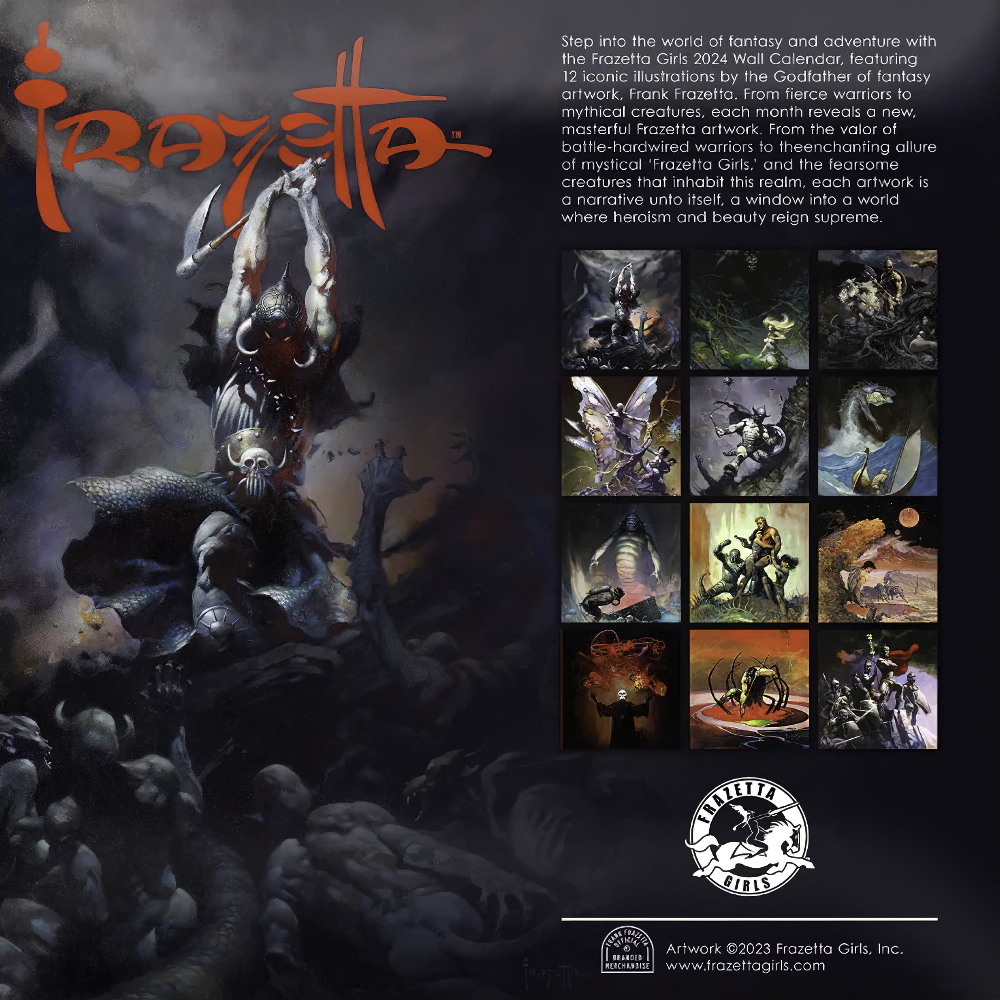 L’édition 2024 du calendrier Frazetta Girls est arrivée ! Entrez dans le monde de la fantasy et de l'aventure avec 12 illustrations emblématiques du doyen de l'art fantasy, Frank Frazetta. Des guerriers féroces aux créatures mythiques, chaque mois révèle une nouvelle illustration magistrale de l’artiste. De la bravoure des guerriers endurcis au combat à l'allure enchanteresse des mystiques "Frazetta Girls", en passant par les créatures redoutables qui peuplent l’univers de Frazetta, chaque illustration est un récit en soi, une fenêtre sur un monde où l'héroïsme et la beauté règnent en maître.