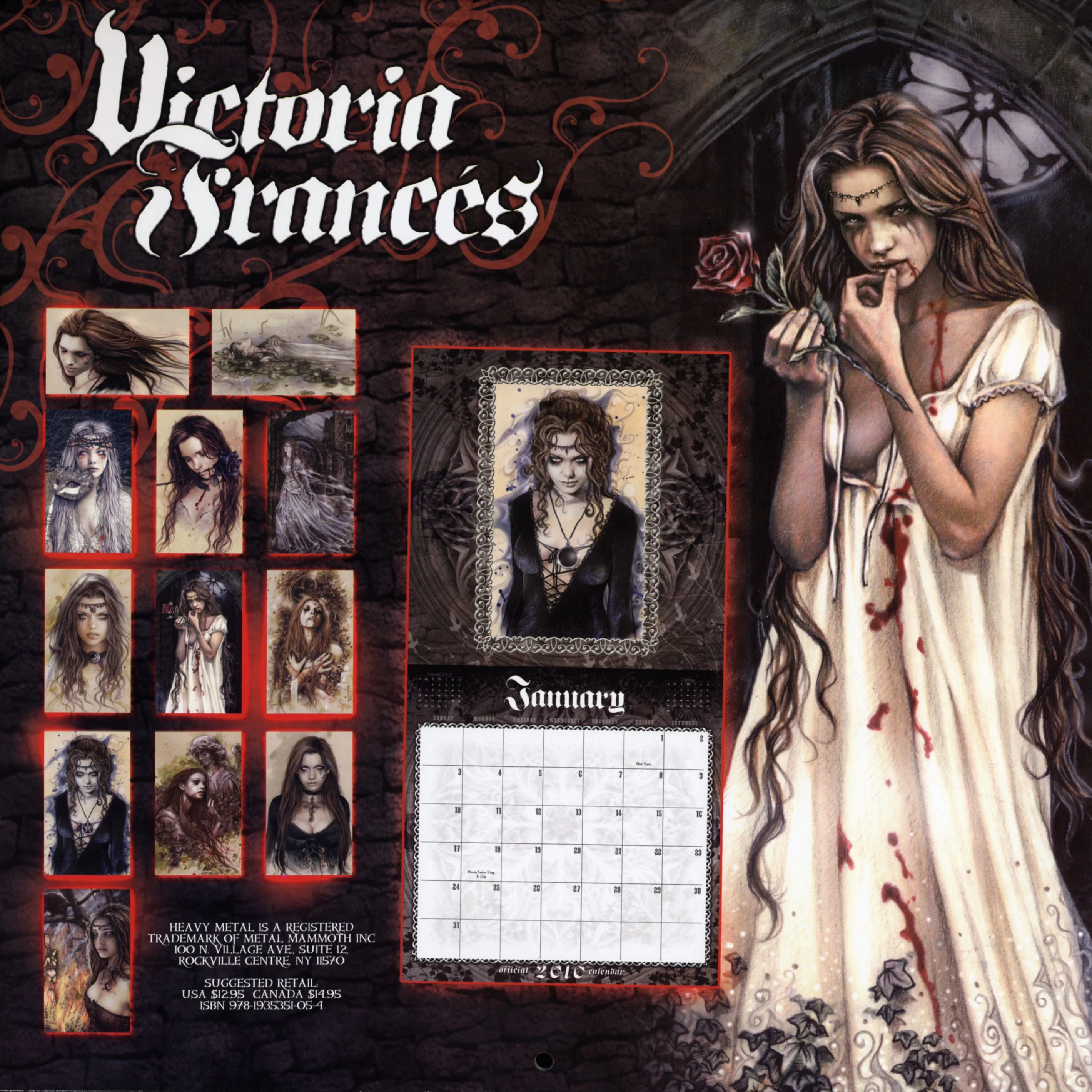 Les œuvres gothiques de Victoria Francés vont une nouvelle fois fasciner tous ses fans avec cette superbe édition officielle 2010 du calendrier Heavy Metal. Au-delà de son style bien particulier, Victoria Francés sait apporter une lumière, une poésie et un caractère romantique à ses magnifiques personnages sortis de l'ombre.
