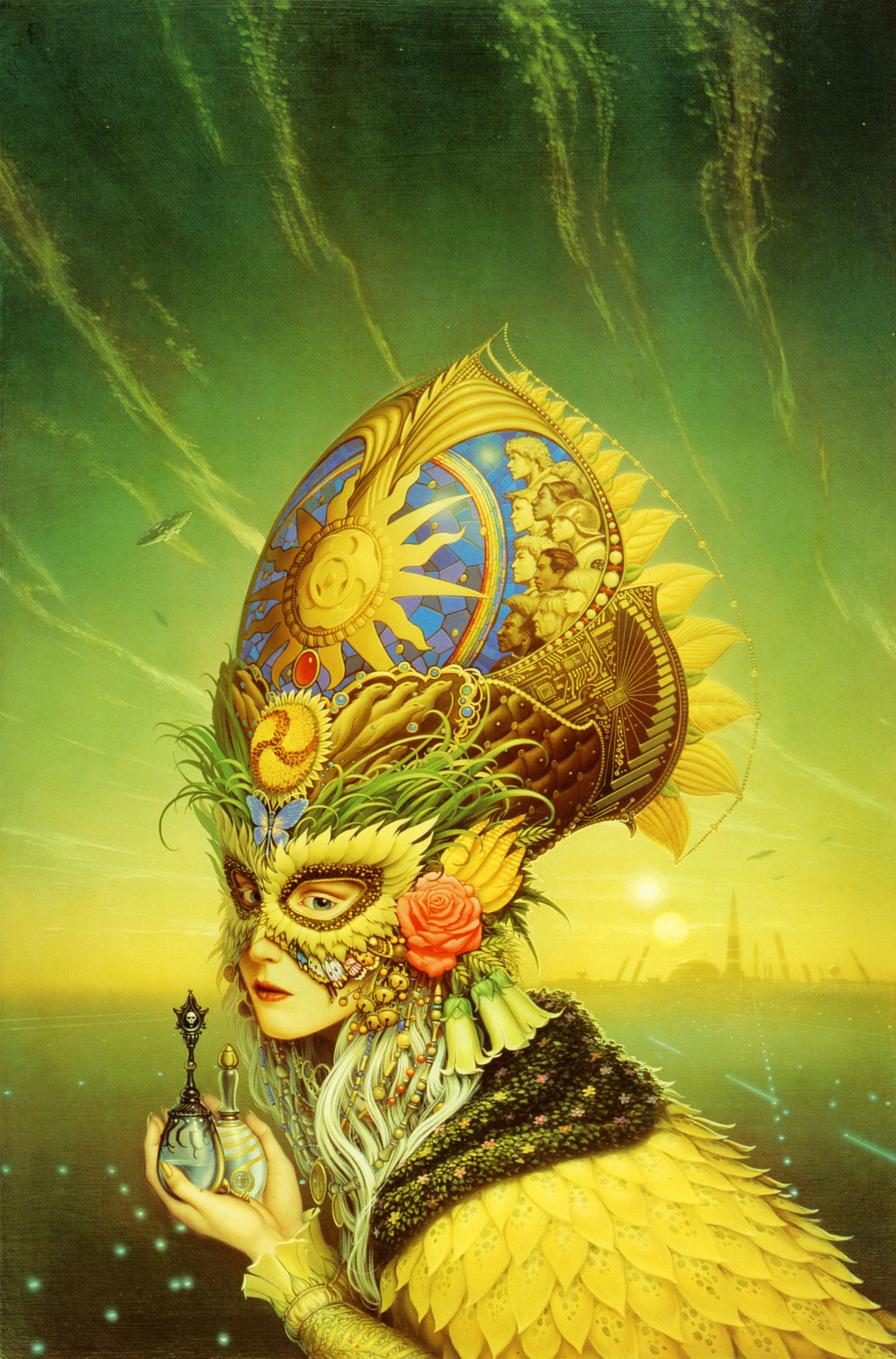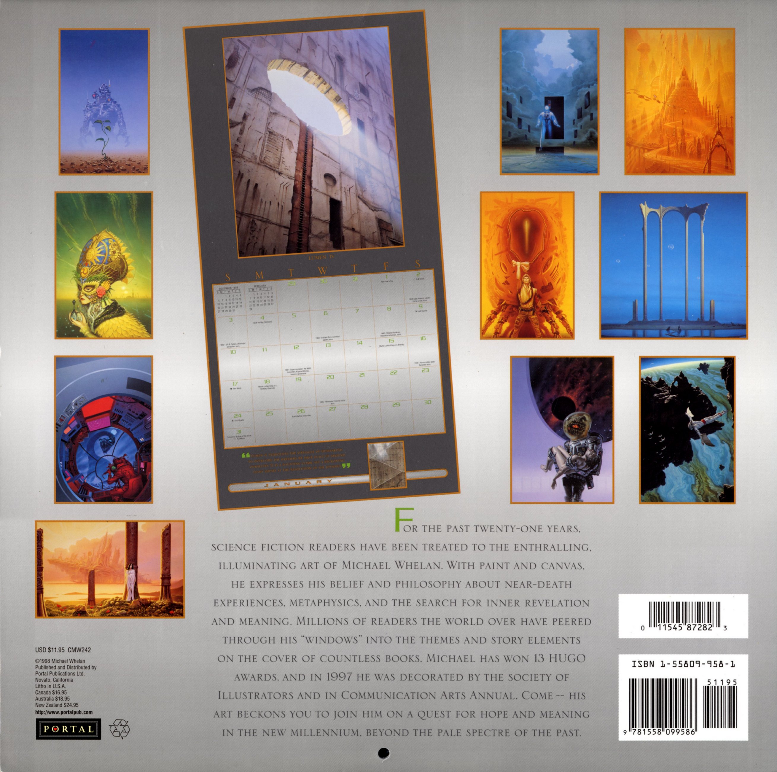 Depuis 21 ans, les lecteurs de science-fiction ont pu découvrir les oeuvres passionnantes et lumineuses de Michael Whelan. Avec de la peinture et une toile, il exprime ses croyances et sa philosophie sur les expériences de mort imminente, la métaphysique et la recherche d'une révélation et d'une signification intérieures. Des millions de lecteurs du monde entier ont jeté un coup d’oeil par ses "fenêtres", aux thèmes et aux éléments de l'histoire qui figurent sur la couverture d'innombrables livres. Les illustrations proposées dans ce calendrier Into the Millennium 1999, vous invitent à le rejoindre dans une quête d'espoir et de sens pour le nouveau millénaire, afin de dépasser le pâle spectre du passé.