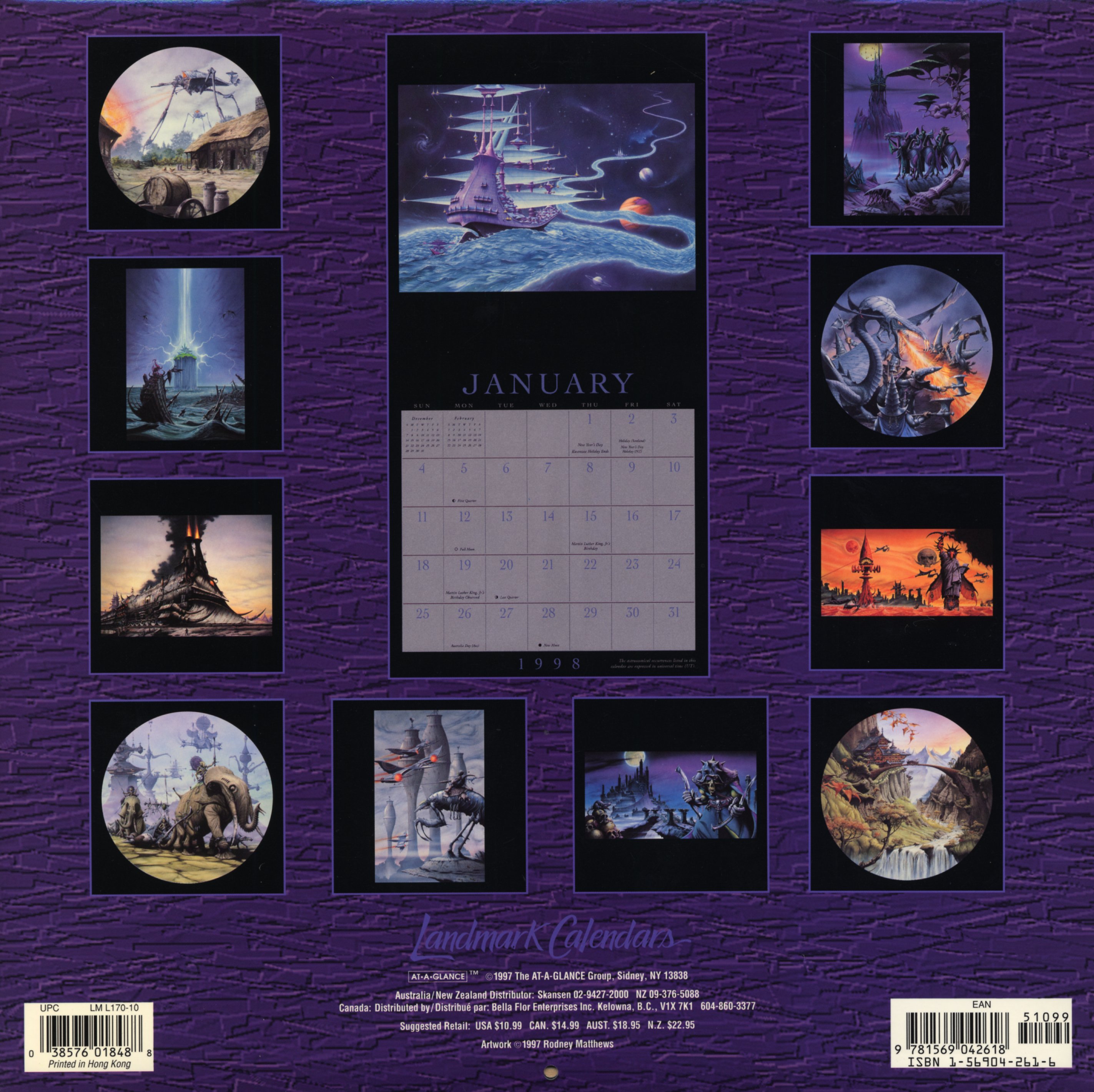 Edition 1998 de la collection des calendriers Rodney Matthews intitulée Fantasy. Malheureusement, ce nouveau calendrier propose onze illustrations déjà aperçues dans des calendriers précédents, seul le mois de décembre nous offre une nouveauté avec Obsidian Castle.