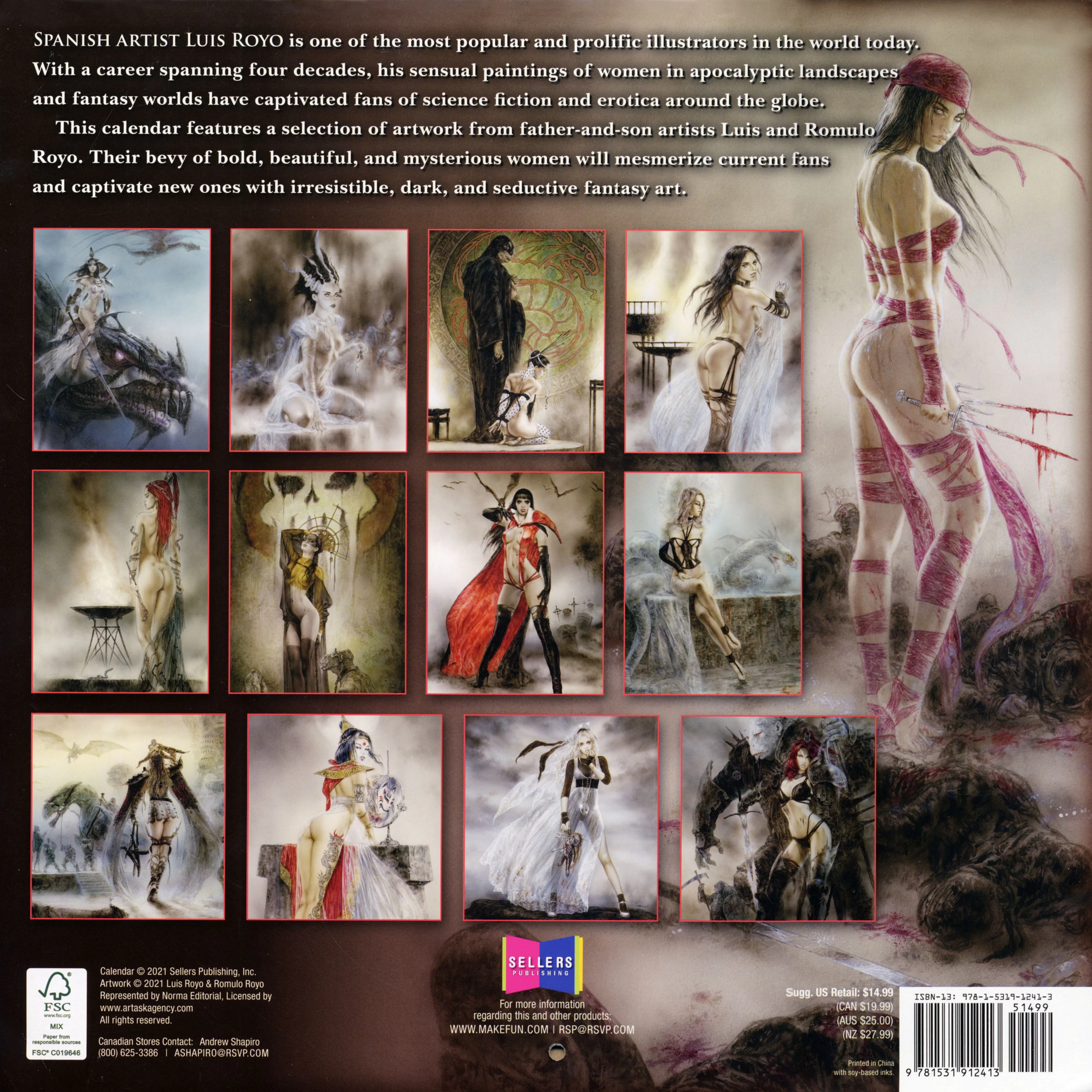 Cette nouvelle édition 2022 du calendrier The Fantasy Art of Royo propose de découvrir, une nouvelle fois, une sélection de treize illustrations tirées des très nombreuses peintures de femmes sensuelles, audacieuses, belles et mystérieuses représentées dans des paysages apocalyptiques et des mondes fantastiques dont, l’artiste espagnol Luis Royo, s’est fait une spécialité internationale.