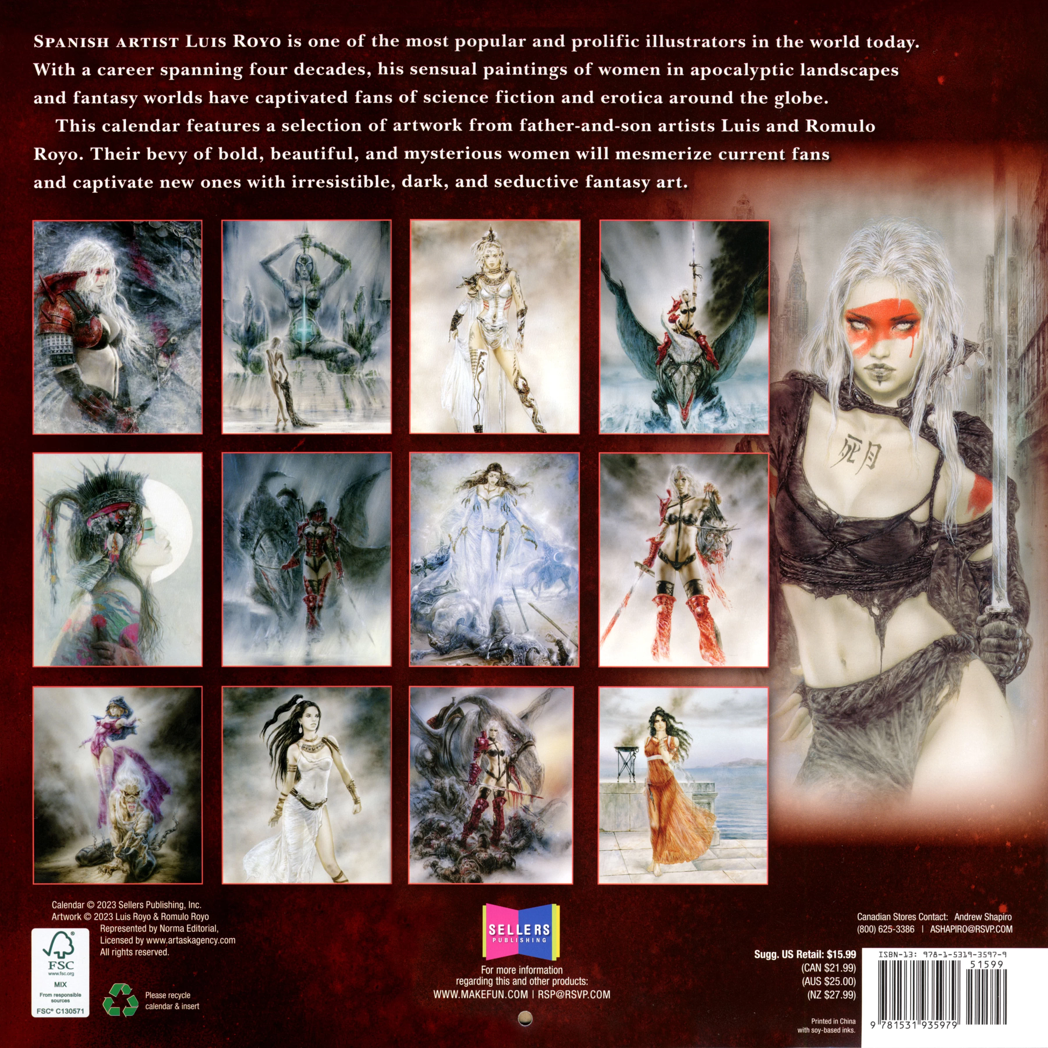 Ce calendrier présente une sélection d'œuvres d'art des artistes père et fils Luis et Romulo Royo. Leur multitude de femmes audacieuses, belles et mystérieuses hypnotiseront les fans actuels et captiveront les nouveaux avec un art fantasy irrésistible, sombre et séduisant.