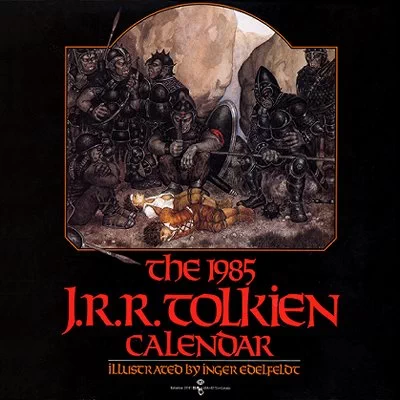 Edition 1985 publiée chez Ballantine, de la collection des calendriers Tolkien. Cette édition est exceptionnellement illustrée à l'aquarelle, par l'artiste suédoise Inger Edelfeldt.