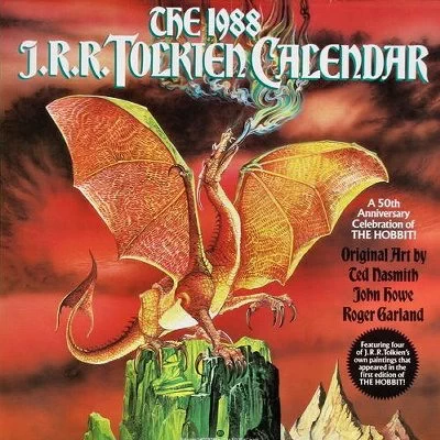 Edition 1988 publiée chez Ballantine, de la collection des calendriers Tolkien. Cette édition est illustrée par J.R.R. Tolkien, accompagné de Ted Nasmith, John Howe et Roger Garland.