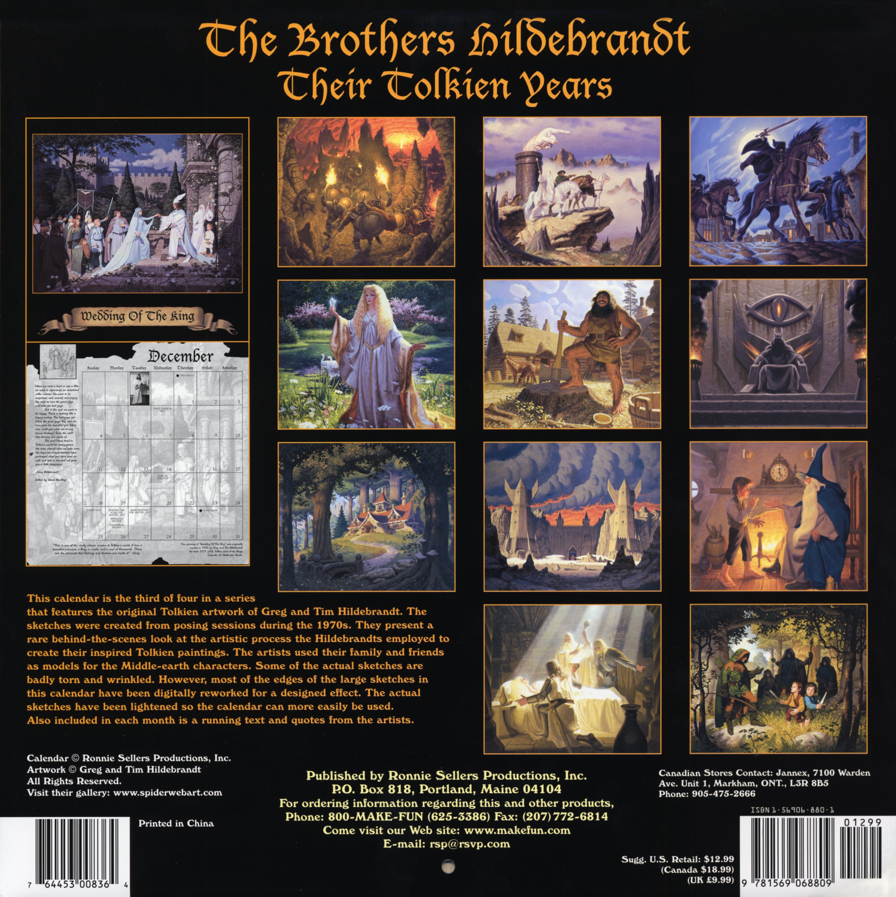 Edition 2005 non officielle de la collection des calendriers Tolkien. Illustré par les frères Hildebrandt, le calendrier est le troisième, sur cinq, d'une rétrospective de leurs années Tolkien, "The Tolkien Art".