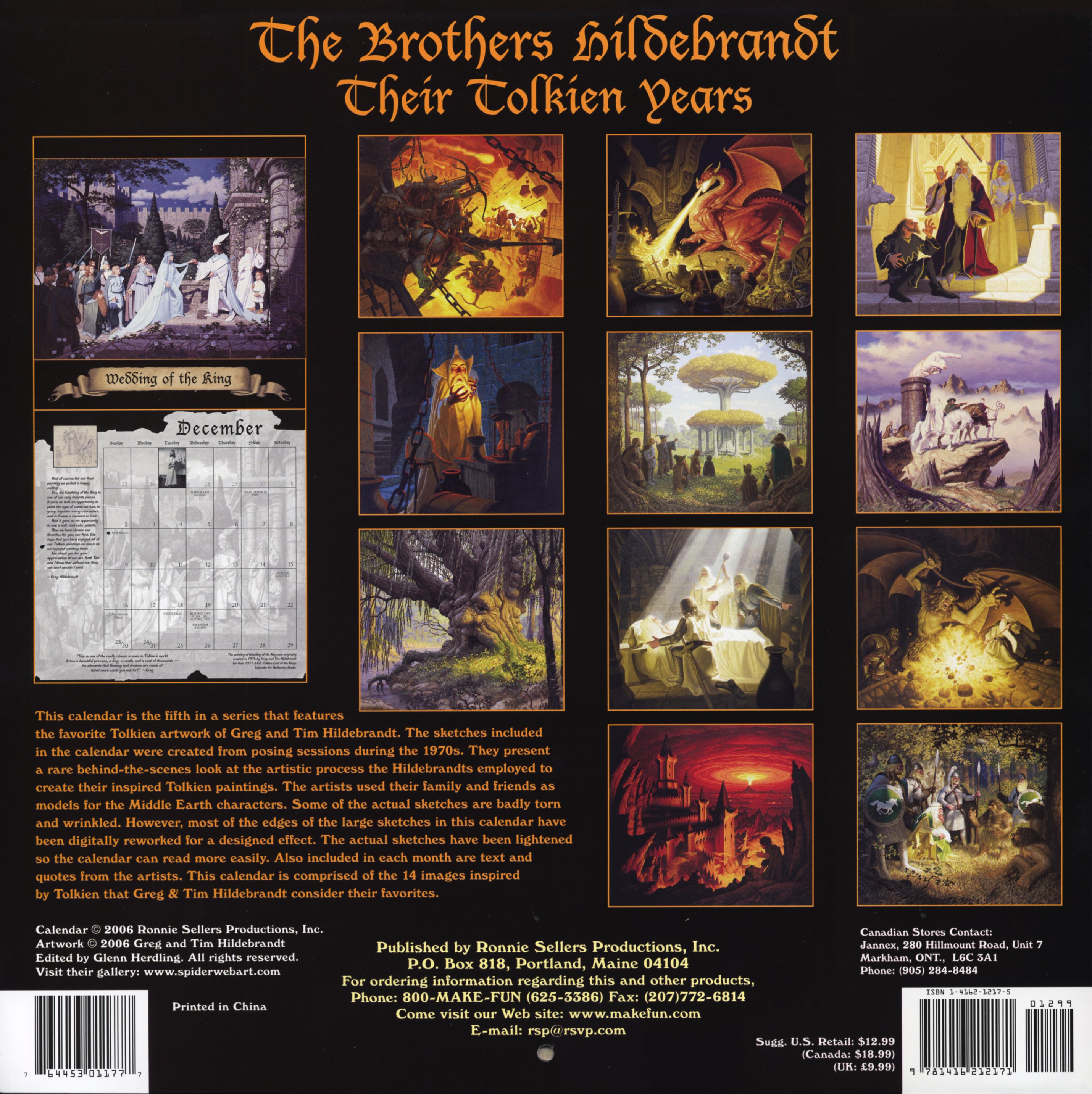 Edition 2007 non officielle de la collection des calendriers Tolkien. Illustré par les frères Hildebrandt, le calendrier est le cinquième et dernier, d'une rétrospective de leurs années Tolkien, "The Tolkien Art".
