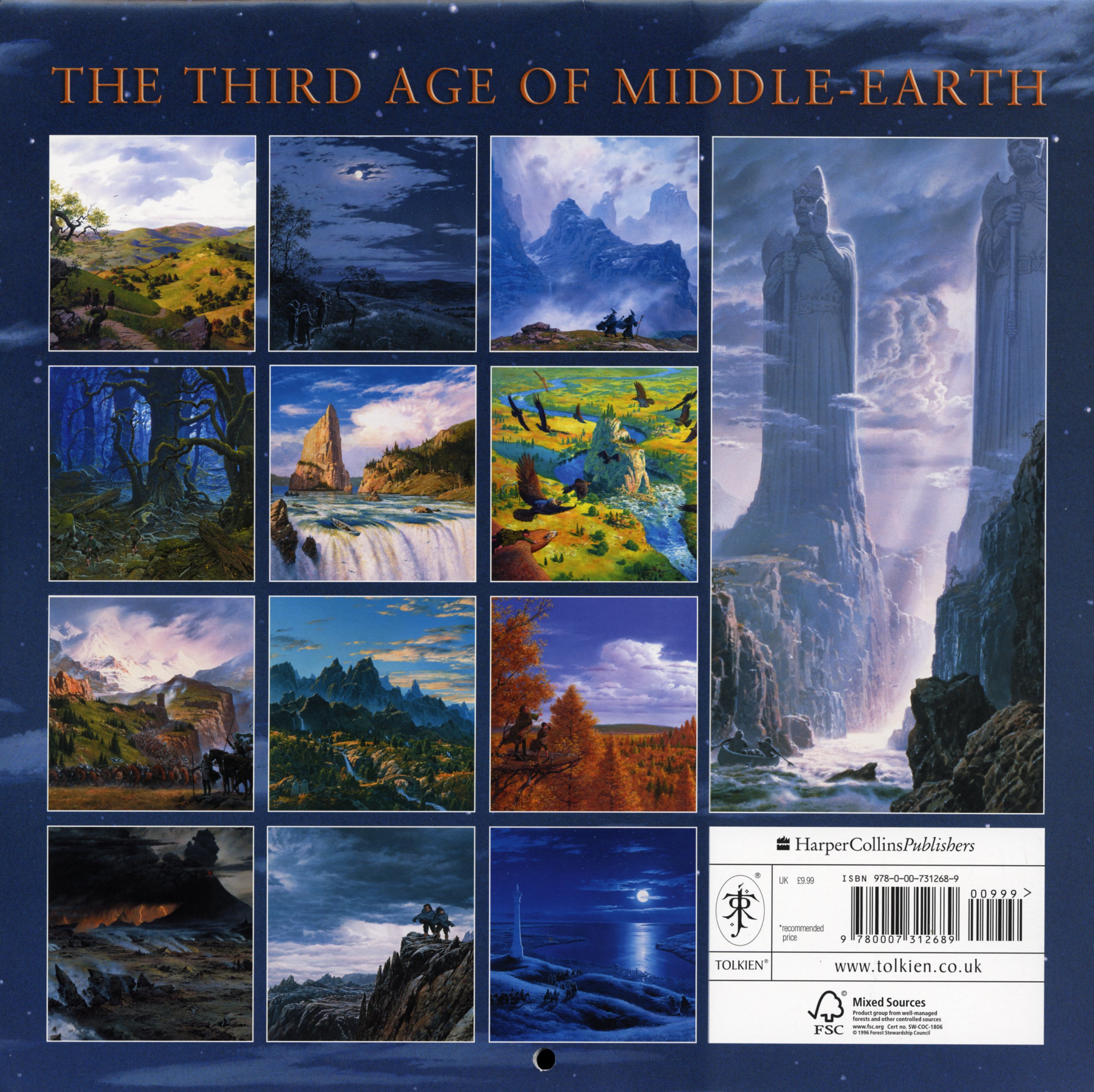 Edition 2010 de la collection des calendriers Tolkien. Illustré par Ted Nasmith, le calendrier présente des œuvres basées sur les histoires du Hobbit, du Seigneur des Anneaux et des Contes et légendes inachevés.